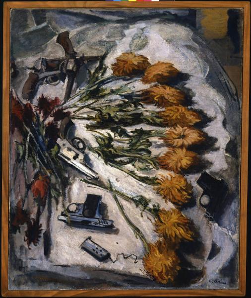 Composizione (Crisantemi e pistole). Crisantemi e pistole