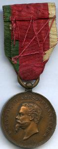 medaglia; nastro a righe verticali, rosso, orlato a sinistra di verde ed a destra di bianco