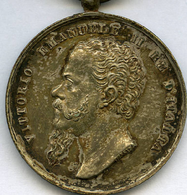 Medaglia commemorativa delle guerre per l'Indipendenza e l'Unità d'Italia. Vittorio Emanuele II; Italia turrita