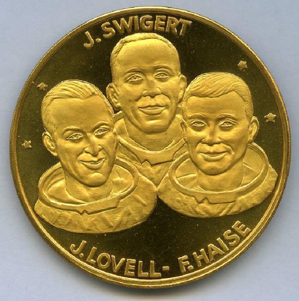 Medaglione ricordo missione Apollo XIII. J. Lovell, J. Swigert; F. Haise; Apollo XIII