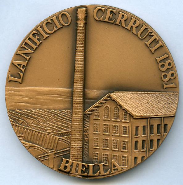 Centenario fondazione Lanificio Cerruti. Stabilimento con ciminiera; marchio