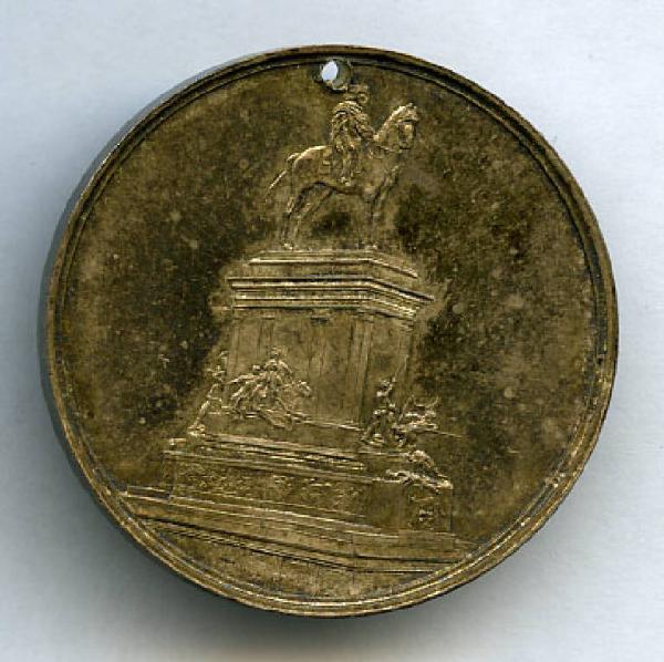 Medaglia commemorativa del monumento a Garibaldi di Lima. Monumento equestre; scritte