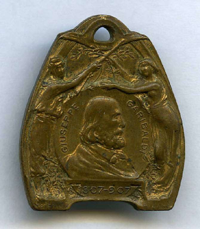 Medaglia commemorativa del Centenario della nascita di Giuseppe Garibaldi. Giuseppe Garibaldi; rami d'alloro