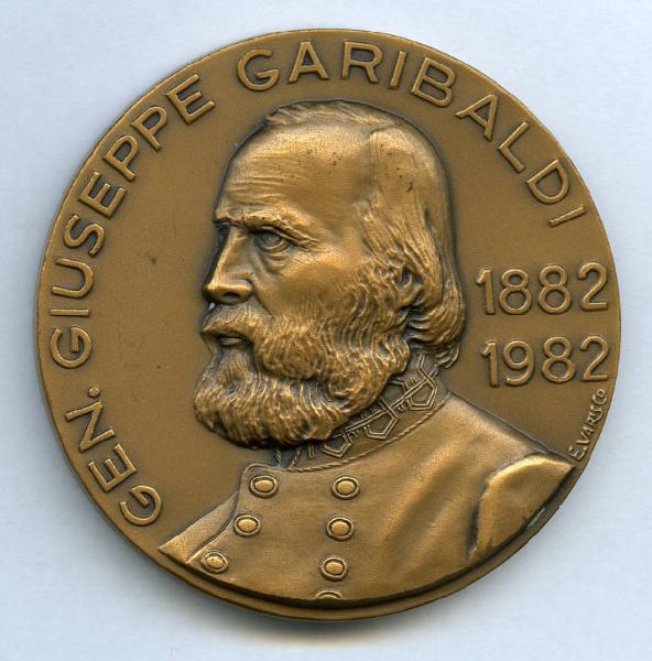 Medaglia commemorativa del Centenario della morte di Giuseppe Garibaldi. Giuseppe Garibaldi; scritte