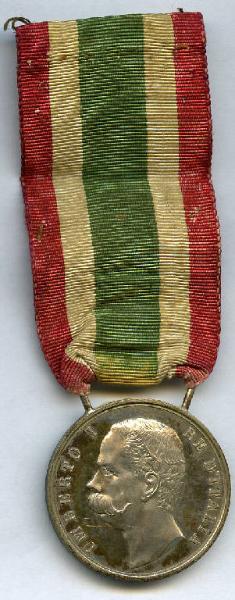 Medaglia a ricordo dell'Unità d'Italia (Medagliere di Giulio Negri). Umberto I; corona vegetale