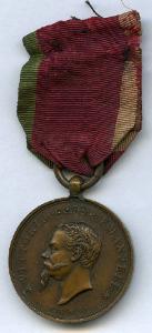 Medaglia; nastro a righe verticali, rosso, orlato a sinistra di verde ed a destra di bianco