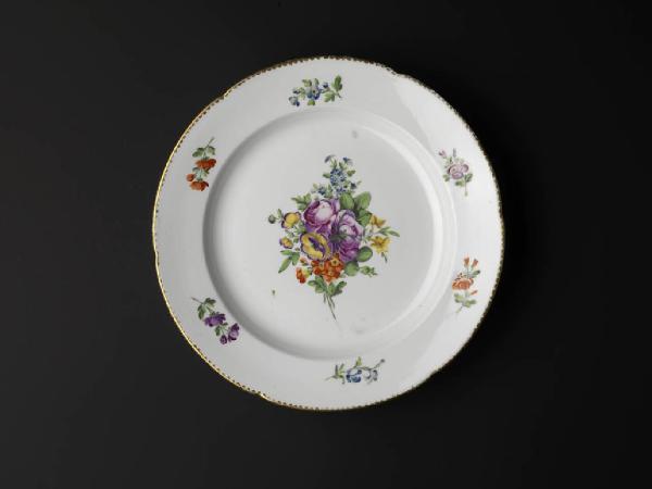 I piatti hanno forma polilobata, con orlo dorato e puntinato. Dipinti a mazzetti di fiori "Au naturel".