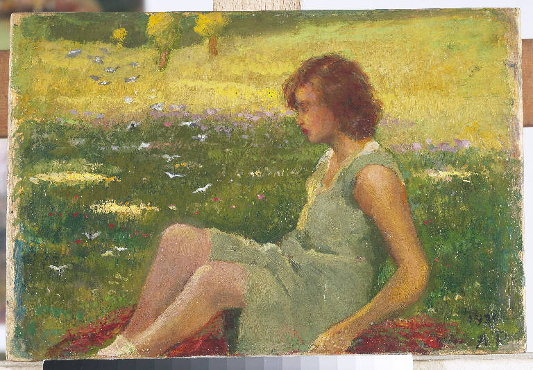 - NOTIZIE STORICO CRITICHE Nell'ultimo decennio della carriera artistica, Antonio Pasinetti predilige rappresentare figure femminili, spesso dell'ambito familiare, in riposo o in attività di lavoro.