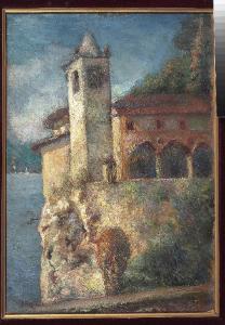 - NOTIZIE STORICO CRITICHE I laghi lombardi offrono ad Antonio Pasinetti numerosi spunti per l'esecuzione di scorci paesisitici come nel caso di quest'opera in cui costruisce la composizione con densi e fitti colpi di spatola che colgono la monumentalità del monastero di Santa Caterina del Sasso sul lago Maggiore.