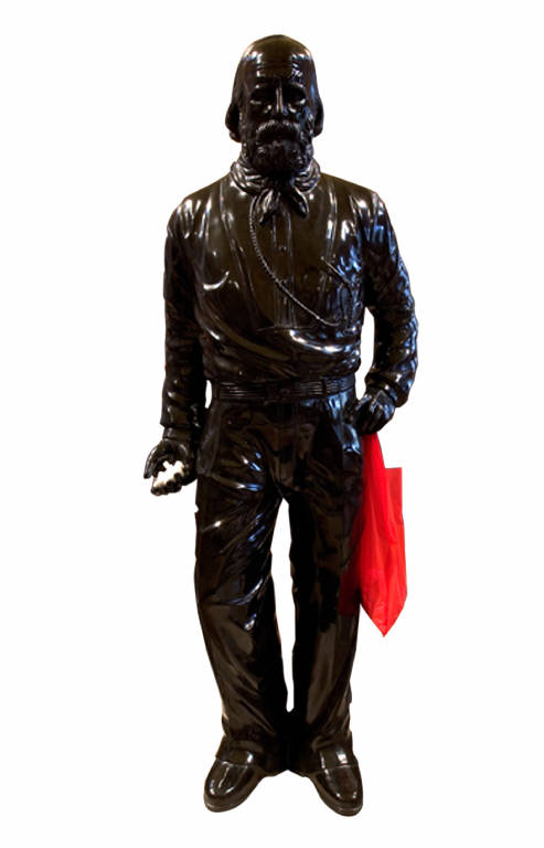 - NOTIZIE STORICO CRITICHE L'opera è la seconda versione di una statua di terracotta inserita in un'installazione dell'albanese Sislej Xhafa a Roma nel 2003. Nel 2007, bicentenario della nascita di Garibaldi, Xhafa esegue di nuovo la scultura realizzandola in marmo nero del Belgio con la promozione della ditta bergamasca Remuzzi Marmi, che festeggia i 100 anni di attività. Alle fasi esecutive partecipano anche due allievi dell'Accademia Carrara di Belle Arti, Luca Resta e Gjoke Gojani. L'opera riproduce ad altezza naturale l'immagine di Giuseppe Garibaldi presente in una fotografia eseguita nel 1860 a Napoli, che ritrae il generale con il braccio sinistro appoggiato all'impugnatura della spada e il braccio destro lungo il busto in atto di tenere il cappello. Nell'opera di Xhafa questa posa retorica viene reinterpretata ironicamente con l'inserimento di un sacchetto di plastica e delle zollette di zucchero, destinate al suo celebre cavallo. La prima e forse la più diffusa icona laica dell'Italia, onnipresente nelle piazze cittadine su alti piedistalli, è liberata da ogni aspetto celebrativo, appoggiata direttamente sul pavimento e ricondotta così al livello dell'osservatore: "Giuseppe" non è più l'Eroe dei due mondi ma diventa un uomo comune. Appiedato e alla ricerca del suo cavallo, Giuseppe sta in realtà cercando un nuovo senso di identità della società occidentale, profondamente destabilizzato dagli importanti e drammatici movimenti migratori degli ultimi decenni. I temi dei diritti umani, della clandestinità, della migrazione e del viaggio sono al centro della ricerca artistica di Xhafa.