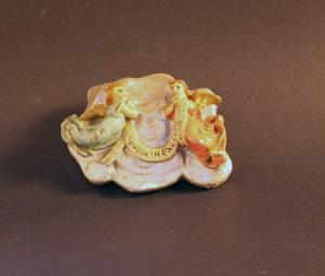Statuetta da presepio rappresentante una coppia di angioletti tra le nuvole.
