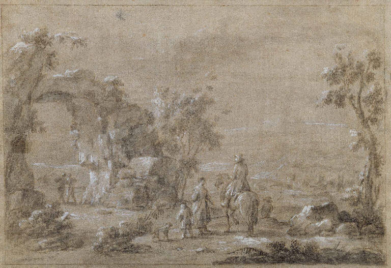 - NOTIZIE STORICO CRITICHE Il disegno appartiene ad una serie di quattro paesaggi eseguiti con la medesima tecnica e nel medesimo periodo (1760 ca.) ed aventi un'unica provenienza, dato indicativo della rarità dal punto di vista collezionistico. (Notizie storico-critiche relative al progetto di catalogazione del 2005).