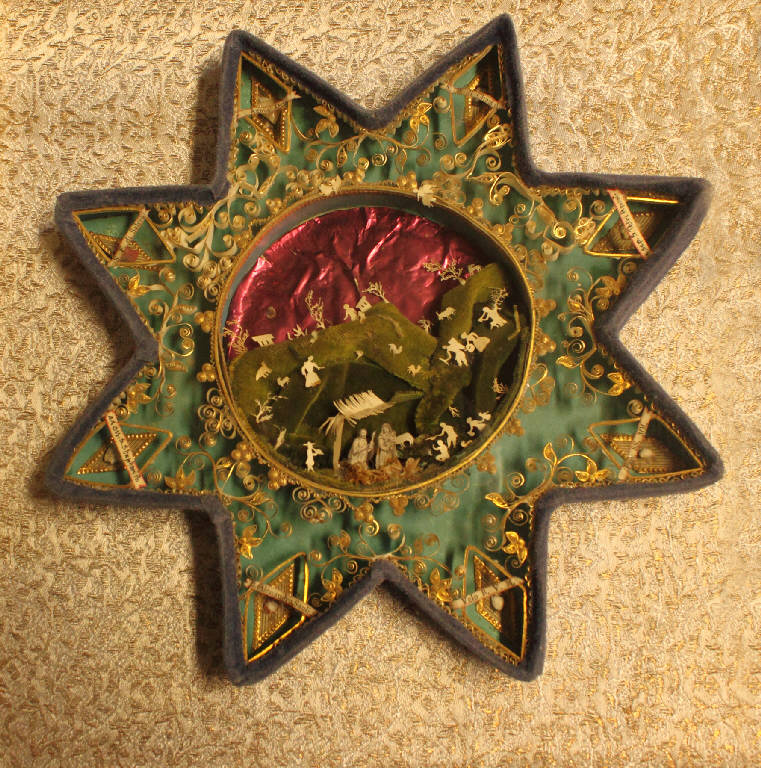 - NOTIZIE STORICO CRITICHE Presepio di carta realizzato da suore di clausura. La scena della Natività è collocata all'interno di una stella ad otto punte. L'opera è giunta al Museo grazie alla donazione del sig. Giuseppe Cavalleri.