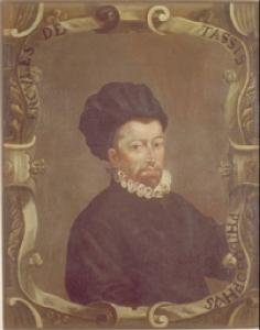 - NOTIZIE STORICO CRITICHE Il dipinto raffigura il filosofo e scrittore Ercole Tasso, consigliere della città di Bergamo e, dal 1577, nunzio stabile a Venezia. Più volte eletto membro del Consiglio del Pio Istituto della Pietà, si interessò dell'epitaffio (1599) che celebra le gesta e i meriti di Bartolomeo Colleoni, ancor oggi leggibile ai lati del sepolcro del condottiero nella Cappella Colleoni. Fu tra gli amministratori della Misericordia Maggiore e, nel 1592, tra i quattro cittadini deputati a scegliere il disegno dell'attuale Palazzo della Biblioteca. Anche questo ritratto (come l'altra effige di Bernardo Tasso, conservata in Biblioteca Civica inv. comunale n. 126728), deriva dal prototipo di Giovan Battista Moroni, già in casa Grimani a Venezia e ora a Zanesville.\nCatalogo Rossi: 411/B9.