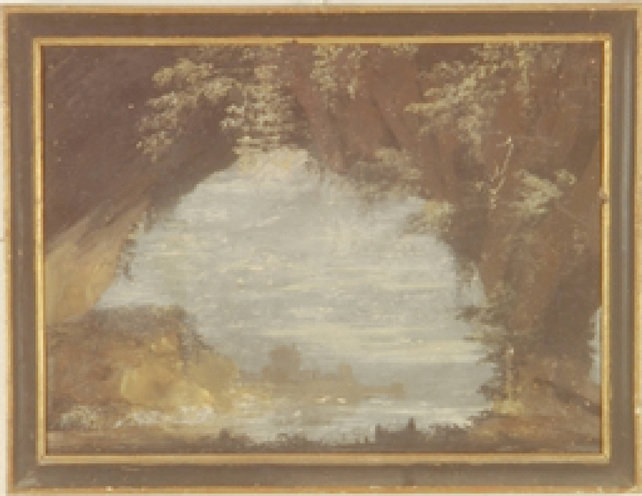 - NOTIZIE STORICO CRITICHE Insieme all'"Interno di locanda" e al "Paesaggio rustico", è una delle tre illustrazioni a tempera su carta del trevigliese Gaspare Galliari, discendente dalla nota famiglia di quadraturisti e scenografi, esposte nell'Ufficio Periodici. Originariamente la serie del Galliari era composta da cinque vedute, due delle quali sono in deposito nella sede dell'Ateneo di Scienze, Lettere e Arti di Bergamo. La serie proviene dall'ex Museo Camozzi-Vertova di Dalmine che conservava dipinti, busti, mobili, importanti cimeli e documenti del Risorgimento (successivamente suddivisi tra Biblioteca e Museo Storico). Il dipinto è inserito in una cornice di legno con profili dorati. \nCatalogo Rossi: B55.