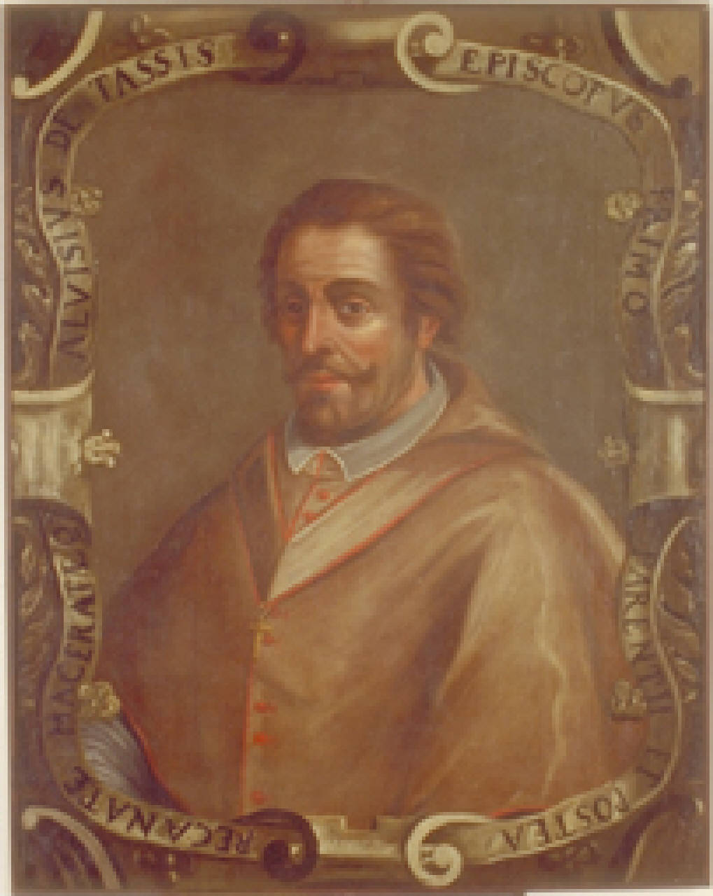 - NOTIZIE STORICO CRITICHE Donato dalla contessa Paolina Varese di Rosate nel 1906, il dipinto raffigura il conte Luigi de Tassis (Bergamo, 1468 - 1520), vescovo della diocesi istriana di Parenzo nel 1499, di Recanati nel 1516 e poco più tardi di Macerata. Nel 1520 fu ucciso nella sua villa di Redona a Bergamo da alcuni malviventi che lo trucidarono per rubare denaro e preziosi. Venne sepolto a Bergamo nella chiesa di Santo Spirito in una tomba tuttora esistente.\nCatalogo Rossi: 412/B11.