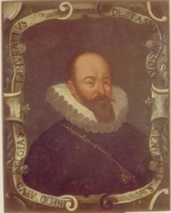 - NOTIZIE STORICO CRITICHE Donato dalla contessa Paolina Varese di Rosate nel 1906, il dipinto raffigura Lamorale Tasso (1557 ca.-1624), che ebbe il titolo di conte per l'incremento dato al servizio di posta. Nel 1615 ottenne il generalato delle poste imperiali in feudo perpetuo.\nCatalogo Rossi: 410/B10.