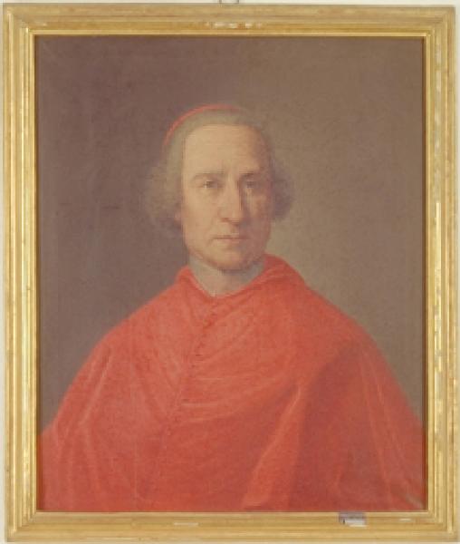 - NOTIZIE STORICO CRITICHE Donato dal cardinal Furietti nel 1760, il dipinto è inserito in una cornice di legno dorato con cartigli lignei intagliati, entro i quali compaiono scritte oro su fondo nero. Ritrae Giuseppe Alessandro Furietti (Bergamo 1684-Roma 1764), cardinale dal 1759, promotore di scavi archeologici ed iniziatore della Civica Biblioteca di Bergamo con il lascito testamentario della sua imponente biblioteca al Comune di Bergamo.\nCatalogo Rossi: 423/B23.