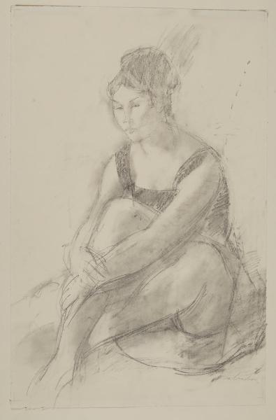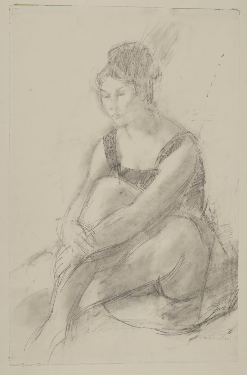 - NOTIZIE STORICO CRITICHE Le opere grafiche di Aldo Salvadori sono poesie scritte di volta in volta con la matita o il carboncino, con la sanguigna o con l’asticella di bambù intinta nell’inchiostro. "E son tutte poesie di donna, ispirate alla grazia naturale della donna, dal suo cuore di fiore, dal suo odor di frutto, dalle sue epidermiche radiazioni di felicità, dal suo trasparente e impenetrabile mistero d’esser bella" (Valeri 1962). Aldo Salvadori inserisce frequentemente queste eleganti figure, nude o abbigliate, ma sempre descritte con naturalezza e in atteggiamenti semplici e pacati. Il disegno "Donna seduta verso sinistra" è un’esempio di tale produzione, un’immagine commossa e armoniosamente formulata. La modella, infatti, nella sua elegante posa, mostra una raccolta sensualità in bilico tra l’attesa e l’abbandono. La figura, immersa in una diffusa trasparenza, acquista nello spazio in cui è posta una dimensione emblematica grazie anche a un chiaroscuro particolarmente fluido creato sfumando il carboncino con i polpastrelli delle dita. Il foglio fu acquistato alla Biennale di Venezia del 1954, insieme a un’altra opera grafica dell’artista (inv. Agg. 307).