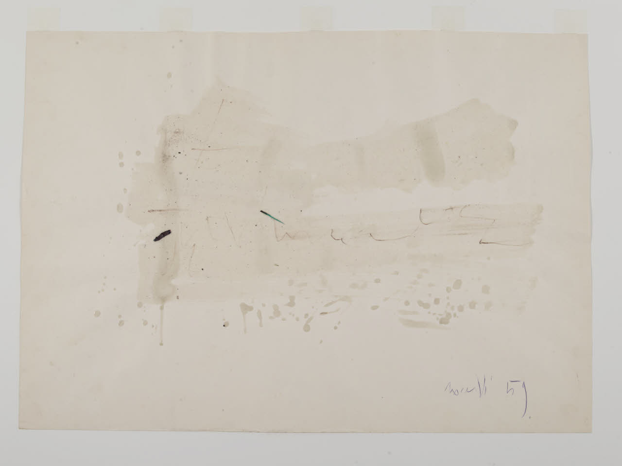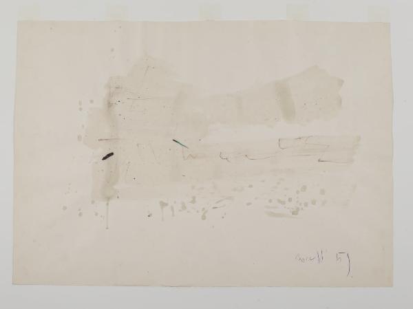 - NOTIZIE STORICO CRITICHE La produzione artistica di Gastone Novelli costituisce una delle ricerche espressive più rilevanti all’interno del panorama culturale italiano degli anni Cinquanta e Sessanta del secolo scorso. Esponente di punta della neoavanguardia, nonchè fondatore insieme ad Achille Perilli de "L’Esperienza Moderna" e de la "Grammatica" con Perilli, Giuliani e Manganelli (due delle riviste italiane più attente agli sviluppi della cultura contemporanea e alla "nuova figurazione"), Novelli elabora la sua opera come una nuova contrapposizione tra materia e gesto. Nelle sue pitture, così come nei suoi disegni, le forme e i segni sono carichi di vivacità espressiva e si concentrano verso nuove strutture semantiche di narrazione. Nel 1984 le civiche raccolte hanno acquistato da Giovanola Ripandelli, moglie dell’artista, otto opere su carta realizzate con tecnica mista. Queste ripercorrono la poetica creativa di Novelli all’interno di un periodo che va dal 1957 al 1968. Partendo da un atto informale, dove la creazione è concepita come energia di una nuova vita e superamento dell’antitesi tra figurativo e non figurativo, tali opere arrivano a un disegno che diventa scrittura, pensiero, concetto creativo. Se nei fogli della fine degli anni cinquanta (invv. 541, 542, 543) si osservano grumi materici di colore, grovigli di segni che affiorano latenti attreverso linee, nei fogli del decennio successivo (invv. 544, 545, 546, 547, 548) si assiste, invece, a un nuovo modo di lavorare, dove non è più possibile distinguere la scrittura dal disegno. \nIn alcuni fogli, ad esempio, (invv. 542, 543) spesse pennellate di colore diventano cancellature che lasciano affiorare simboli e macchie in trasparenza; in altri ancora (invv. 544, 545) il segno domina la composizione attraverso una scrittura automatica che diventa flusso di coscienza, il foglio bianco è diviso in settori ed è ricoperto da frasi e frammenti d’immagine. Infine, in altri (inv. 546, 548) la sagoma della montagna, con annotazioni e parole o quella della barca che galleggia in un mare di linee colorate, diventano simboli archetipi all’interno di un nuovo modo di comunicare . \nIl tratto del medium grafico con cui l’artista lavora è leggero, narrativo e sapiente; inoltre, come osservato da Massimo Bignardi, nelle sue opere grafiche "Gastone Novelli sottrae la linea al suo ruolo costruttivo, riducendo la presenza a mera traccia, corsiva e rapida apparizione, di minime annotazioni poste ai margini [...]. Il disegno diviene un processo d’immediato contatto, di facile fruire dell’immaginario e soprattutto delle energie sprigionate dagli stati profondi della psciche che vanno ad insinuarsi nei territori di fondi corposi, densamente plastici come avviene soprattutto nelle opere pittoriche" (M. Bignardi, l disegno dello "spregiato", in M. Perosino, Disegno italiano del Novecento, Milano 1993, p. 292). Un’antologia della sua opera su carta è stata curata da Flamionio Gualdoni al Padiglione d’Arte Contemporanea di Milano nel 1983, occasione nella quale furono esposti anche alcuni dei fogli sopra citati (invv. 544, 545, 548).