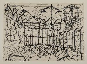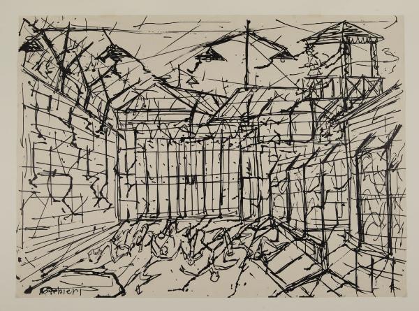 - NOTIZIE STORICO CRITICHE Agostino Barbieri intraprende l’attività artistica sin da giovanissimo. La chiamata alle armi, nel corso della Seconda Guerra Mondiale, lo porta in Jugoslavia come combattente nella campagna di Russia e dal 1943 è impegnato nella guerra di liberazione partigiana. Nel novembre del 1944, viene arrestato e deportato come prigioniero politico in un piccolo paese a pochi chilometri da Linz, nel campo di concentramento di Mauthausen. La tragica realtà a Mauthausen, oltre a lasciare un’impronta indelebile all’interno della sua esistenza, ha portato l’artista a creare alcune tra le più struggenti testimonianze grafiche sui campi di sterminio nazisti. All’interno delle raccolte del Civico Gabinetto di Disegni del Castello Sforzesco di Milano si conservano quindici disegni realizzati da Barbieri nel 1945, probabilmente subito dopo il suo ritorno in Italia (inv-inv. agg. 549-563). \nQueste opere sono caratterizzate da una forte concitazione espressiva mediata da una drastica semplificazione grafica della linea. Corpi nudi e senza vita sono ammassati su comuli di cadaveri, figure larvali dai volti smarriti sono posti all’interno di forni crematoi o in squallide baracche, lavorano nelle cave o all’interno del campo. In queste opere, il vigore della linea riesce a esprime e a comunicare aspetti di una realtà angosciante, un mondo dove ogni speranza è perduta e dove la sola certezza è la morte. Per l’incisività del tratto di china e la prorompente forza espressiva, tali opere possono considerarsi come una delle più toccanti testimonianze dell’agire umano; esse sono il ripensamento intellettuale di un ricordo indelebile, sono la denuncia alla più mostruosa macchina di annientamento verso l’essere umano. Forte è inoltre il legame tra questi disegni e le opere dell’espressionismo tedesco, dove la presenza di figure spettrali diventa l’elemento principale di una pantomima sociale: nei disegni di Barbieri, però, tali elementi diventano fantasmi ridotti al degrado più assoluto, sono corpi che simulano l’esistenza attraverso una terribile danza macabra