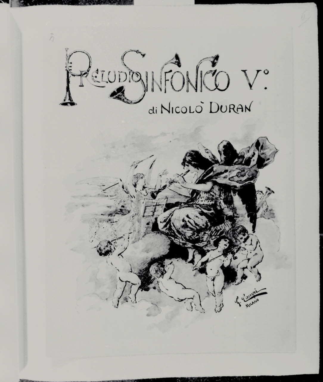 - NOTIZIE STORICO CRITICHE L’album inv. L B 15 del Civico Gabinetto dei Disegni del Castello Sforzesco, raccoglie una serie di illustrazioni realizzate da Giacomo Campi (1846 - 1921). Donato al Comune di Milano da Luigi Donnini nel 1937, è composto da 61 fogli montati su 63 pagine di carta color avorio dove su ognuna di esse è indicato a matita il corrispettivo numero progressivo dei diversi fogli. I disegni, tutti firmati"Giacomo Campi. Milano", sono stati realizzati come frontespizi di spettacoli musicali, canzoni e ballate composte da Nicolò Duran; i versi di alcune di queste composizioni sono invece di U. Barbieri, E. Boccola, F. Cavallotti, G. E. Ducati, G. Giacchi, R. Paravicini, L. Stecchetti, Q. Vivanti, J. Well. Tali opere grafiche, molte delle quali quadrettate a matita, sono realizzate con rapidi e veloci tratti di inchiostro nero e acquerelli colorati dalle vivaci e cangianti cromie. Su ogni foglio, nella parte superiore al centro, campeggia il titolo della composizione descritta con caratteri stilizzati, arabeschi vegetali e capilettera figurali. Le scene rappresentate hanno spesso ambientazioni che evocano il genere musicale e rimandano a un tipico gusto Liberty, che si trasforma in motivi rococò o neoclassici. Nelle diverse composizioni si osservano principalmente soggetti e figure di giovani innamorati che danzano, si guardano o assumono atteggiamenti e pose romantiche in ambienti bucolici o all’interno di ricche dimore. Difficile risulta, a oggi, stabilire una data certa per la loro esecuzione, ma è molto probabile che siano state realizzate in un lasso di tempo abbastanza ampio e verosimilmente dopo il 1871, anno in cui l’artista prese fissa dimora a Milano. Il pittore, prima di tale data, aveva infatti frequentato l’Accademia Carrara di Bergamo e successivamente l’Accademia di S. Luca a Roma. Nella Milano di fine Ottocento acquistò subito grande popolarità, prese attivamente parte a tutte le manifestazioni della "Scapigliatura" lombarda e si distinse come pittore di affreschi, scene di genere e acquafortista, oltre che come inconfondibile acquerellista.