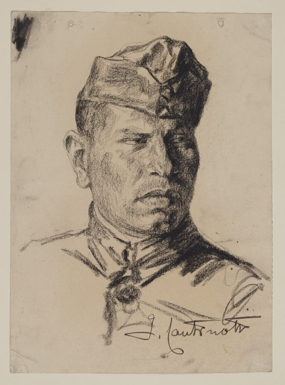 - NOTIZIE STORICO CRITICHE Studente di pittura all’Accademia di Brera, nel 1895 Innocente Cantinotti si iscrisse alla Famiglia Artistica partecipando attivamente alle esposizioni organizzate dall’Associazione. Allo scoppio della Prima Guerra Mondiale, dopo un breve corso da ufficiale, l’artista partì per il fronte come panoramista con il compito di registrare, attraverso la sua matita, l’andamento della linea nemica. Nel corso della guerra realizzò, su semplici fogli d’album, una serie di opere grafiche di grande spessore emotivo, raffiguranti paesaggi, rovine e ritratti di soldati al fronte osservati da diversi punti di vista (Marra 2008). Molte di queste testimonianze si conservano oggi all’interno delle Civiche Raccolte Storiche del comune di Milano, mentre un piccolo nucleo di ritratti con i "Prigionieri austriaci" è custodito presso il Civico Gabinetto di Disegni del Castello Sforzesco. Quest’ultimi fogli furono acquistati nel giugno del 1925 alla "Mostra degli artisti combattenti" ; una delle tante esposizioni del Gruppo degli Artisti Combattenti di cui Cantinotti fu socio fin dalla fondazione, avvenuta il 23 novembre del 1924 presso la Famiglia Artistica (Ivi.). I quattro disegni (Invv. 1573 B 556, 1574 B 557, 1576 B 559, 1576 B 559), realizzati probabilmente sul fronte del Piave - dove nel novembre del 1918 l’artista si trovava con l’ottava armata - descrivono, attraverso una restituzione meticolosa dei dettagli fisiognomici, quattro prigionieri austriaci di età differente. Sono opere dalla forte introspezione psicologica, prive di particolare ricercatezza formale, ma fortemente realistiche ed espressive. L’artista, infatti, senza nessuna retorica e attraverso un uso sapiente del chiaroscuro, dedica particolare attenzione agli stati d’animo degli effigiati, ai loro sguardi penetranti e ai volti scavati dalla sofferenza e dalla fame. Nella produzione grafica di Cantinotti tali opere mostrano una predilezione per il genere del ritratto e riescono a descrivere, "meglio ancora delle loro gesta[...], l’anima esegrabile dei nostri nemici" (cfr. Pittori Soldato al fronte, in "L’illustrazione italiana", a. XLVI n. 1, 1919, pp. 9-13).