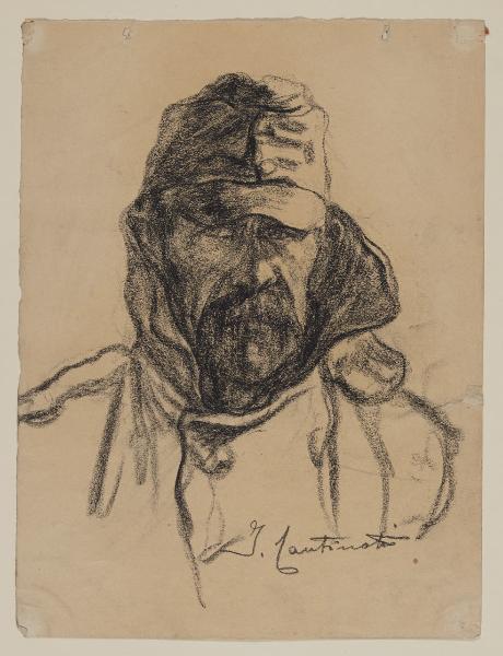 - NOTIZIE STORICO CRITICHE Studente di pittura all’Accademia di Brera, nel 1895 Innocente Cantinotti si iscrisse alla Famiglia Artistica partecipando attivamente alle esposizioni organizzate dall’Associazione. Allo scoppio della Prima Guerra Mondiale, dopo un breve corso da ufficiale, l’artista partì per il fronte come panoramista con il compito di registrare, attraverso la sua matita, l’andamento della linea nemica. Nel corso della guerra realizzò, su semplici fogli d’album, una serie di opere grafiche di grande spessore emotivo, raffiguranti paesaggi, rovine e ritratti di soldati al fronte osservati da diversi punti di vista (Marra 2008). Molte di queste testimonianze si conservano oggi all’interno delle Civiche Raccolte Storiche del comune di Milano, mentre un piccolo nucleo di ritratti con i "Prigionieri austriaci" è custodito presso il Civico Gabinetto di Disegni del Castello Sforzesco. Quest’ultimi fogli furono acquistati nel giugno del 1925 alla "Mostra degli artisti combattenti" ; una delle tante esposizioni del Gruppo degli Artisti Combattenti di cui Cantinotti fu socio fin dalla fondazione, avvenuta il 23 novembre del 1924 presso la Famiglia Artistica (Ivi.). I quattro disegni (Invv. 1573 B 556, 1574 B 557, 1576 B 559, 1576 B 559), realizzati probabilmente sul fronte del Piave - dove nel novembre del 1918 l’artista si trovava con l’ottava armata - descrivono, attraverso una restituzione meticolosa dei dettagli fisiognomici, quattro prigionieri austriaci di età differente. Sono opere dalla forte introspezione psicologica, prive di particolare ricercatezza formale, ma fortemente realistiche ed espressive. L’artista, infatti, senza nessuna retorica e attraverso un uso sapiente del chiaroscuro, dedica particolare attenzione agli stati d’animo degli effigiati, ai loro sguardi penetranti e ai volti scavati dalla sofferenza e dalla fame. Nella produzione grafica di Cantinotti tali opere mostrano una predilezione per il genere del ritratto e riescono a descrivere, "meglio ancora delle loro gesta[...], l’anima esegrabile dei nostri nemici" (cfr. Pittori Soldato al fronte, in "L’illustrazione italiana", a. XLVI n. 1, 1919, pp. 9-13).
