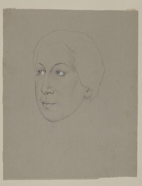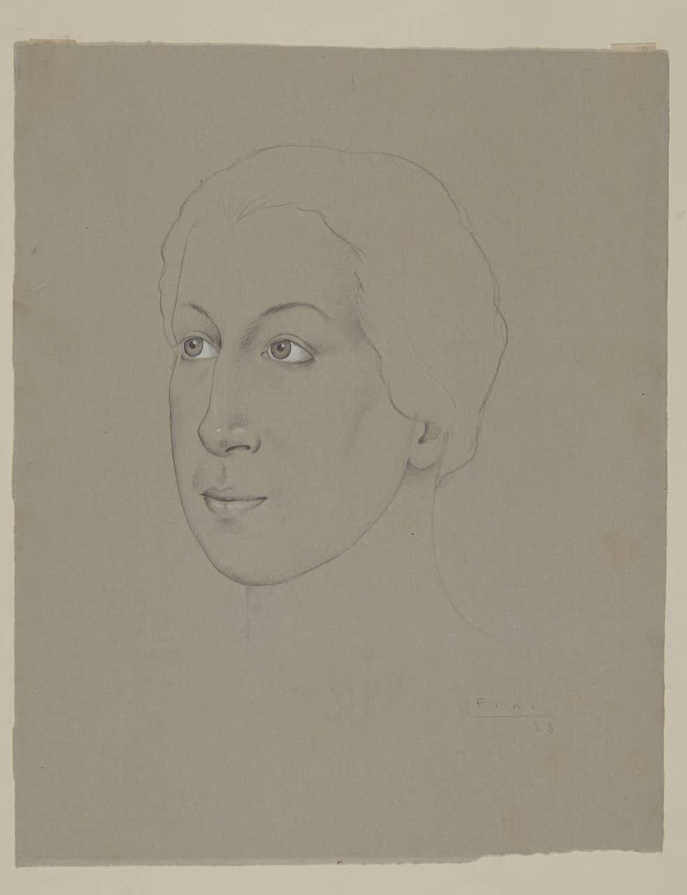 - NOTIZIE STORICO CRITICHE "Sono sempre stata attirata dal disegno. Ho continuato a disegnare all’età in cui, verso i nove anni, la maggior parte dei bambini smette di farlo" (M. Masau Dan, Leonor Fini. L’italienne de Paris, Trieste 2009, p. 232). Sono queste le parole con le quali Leonor Fini si racconta negli anni Novanta; parole sintomatiche che tracciano il ritratto di un’artista che alla sua prolifica produzione pittorica affiancò sempre una altrettanto ricca attività grafica. Fin dalle opere giovanili, prodotte nella sua Trieste, si distinse per una tendenza alla forzatura espressionistica ed una inclinazione verso la caricatura. Verso la fine degli anni Venti l’artista si trasferì a Milano, dove incontrò Achille Funi "compagno e sodale in arte e in amore" ed entrò in contatto con il Ritorno all’Ordine propugnato da «Valori Plastici» prima e poi ufficializzato dal gruppo di Novecento. In questi anni produsse una serie di ritratti degli amici più cari, tra i quali i pittori Arturo Nathan e Carlo Sbisà, dove emerge uno spiccato senso realistico; a questa temperie culturale possiamo ascrivere la "Testa femminile" del 1928. Il disegno può essere accostato al più noto "Doppio autoritratto", di un anno precedente, nel quale Leonor si raffigura giovane - così come doveva essere al momento dell’esecuzione - e anziana, quasi una visone di come avrebbe dovuto apparire in futuro. Si riconosce lo stesso segno grafico che tende a raccontare la realtà così come è, senza risparmiare un’imperfezione o un dettaglio che il tempo ha impresso nel volto. Anche la "Testa femminile" appare realistica, nel non voler addolcire quei tratti marcati che delineano il viso muliebre, seppur ingentilito da uno sguardo lontano e assorto. Innegabili i contatti con il Ritorno all’Ordine, cui il disegno sembra guardare nell’evocare un volto aulicamente quattrocentesco, immobile nella sua statuaria bellezza e severità. Il disegno è stato acquistato nel 1929 dalla Galleria Milano, probabilmente dopo la mostra collettiva degli artisti triestini Leonor Fini, Arturo Nathan, Carlo Sbisà. In quell’occasione l’artista espose due disegni.