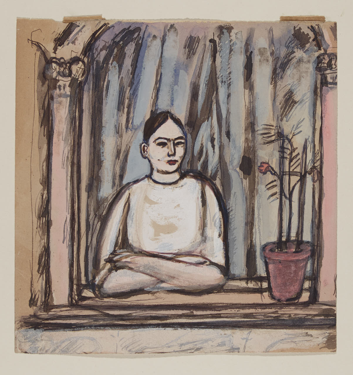 • NOTIZIE STORICO CRITICHE Garbari ritrae una donna affacciata alla finestra. Il suo volto è delineato con tratti marcati che inquadrano perfettamente l’ovale del viso, i capelli raccolti con ordine, le folte sopracciglia e gli occhi neri. Il tracciato scuro orla la figura umana e le cose intorno a essa: la finestra con le colonnine e i capitelli, la tenda e il vaso con le piante. Nell’intera composizione domina una pittura à plat, pur non mancando delle ombreggiature e uno schiacciamento delle forme, quest'ultimo ribadito dall’uso prevalente di un nero compatto che marca i contorni. Il tratto nero semplifica e riduce, ma esalta l’effigiata come in un rilievo monumentale scabro e asciutto.