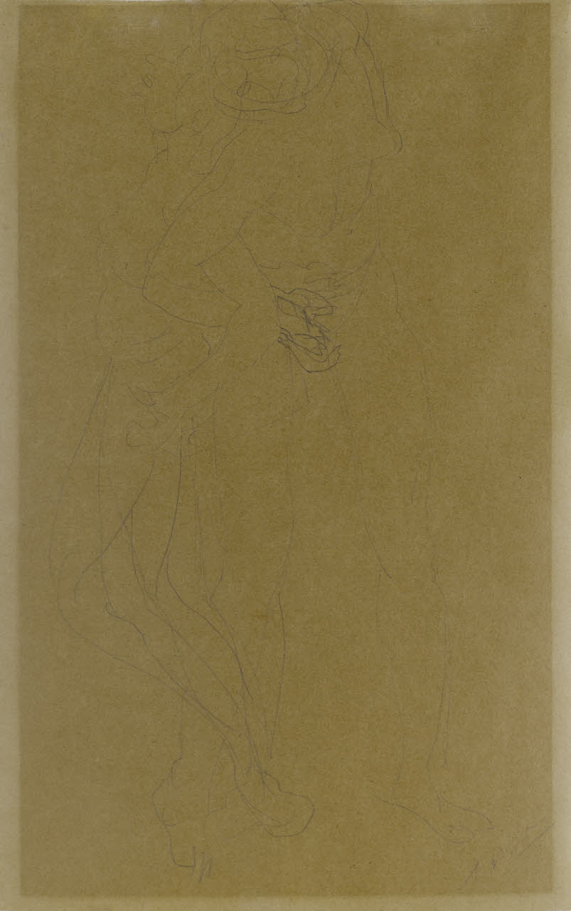 - NOTIZIE STORICO CRITICHE Così come i nudi realizzati da Klimt, anche quelli eseguiti da Rodin sono spesso caratterizzati da una particolare ambiguità erotica. Nei numerosi disegni con nudi femminili, l'artista francese scruta, attraverso sintetici tratti di matita, la natura propria della donna, oltrepassando i limiti stessi che il perbenismo borghese del suo tempo imponeva. Tale condizione è in parte esplicita nel disegno dell'artista conservato presso il Civico Gabinetto di Disegni del Castello Sforzesco di Milano. Il foglio in questione, appartenuto a Vittorio Pica, è stato pubblicato dal critico e letterato d'arte all'interno del saggio dedicato a "I disegni di tre scultori moderni" apparso prima su "Emporium" nel 1916 e successivamente sulla rubrica di "Attraverso gli albi e le cartelle. Sezioni d'arte", insieme ad altre illustrazioni dello stesso autore. Realizzato dall'artista molto probabilmente verso la fine della sua vita, fu acquistato per le raccolte pubbliche milanesi nel 1931, in occasione dell'asta delle opere d'arte possedute da Pica. Sul sottile foglio di carta da schizzi color beige, attraverso una profonda modernità d'espressione, Rodin abbozza con leggeri tratti di matita due figure femminili che, dimenandosi, attorcigliano i loro corpi scarni. Le due figure, bloccate in pose poco consuete, sono descritte attraverso una semplificazione sintetica delle forme e un segno voluttuoso che tratteggia le muliebri membra nude.