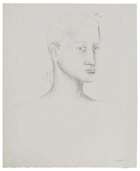 - NOTIZIE STORICO CRITICHE Il mezzo grafico è usato da Sassu non solo come supporto progettuale per le opere dipinte, ma anche come linguaggio espressivo autonomo. Il foglio con lo "Studio della testa maschile" firmato e datato al 1933 è stato acquistato per le raccolte pubbliche direttamente presso l'artista in quello stesso anno. Il disegno, probabilmente un ritratto o semplicemente uno studio, si caratterizza per una semplicità della forma e una sintesi della scrittura grafica. La testa è abbozzata da tratti leggeri di matita nella parte superiore che si infittiscono, diventando sempre più marcati, nel resto del volto. Il chiaroscuro è realizzato mediante lunghi tratti veloci di matita grassa che si incrociano e si intrecciano attraverso linee discontinue nelle parti più in ombra.
