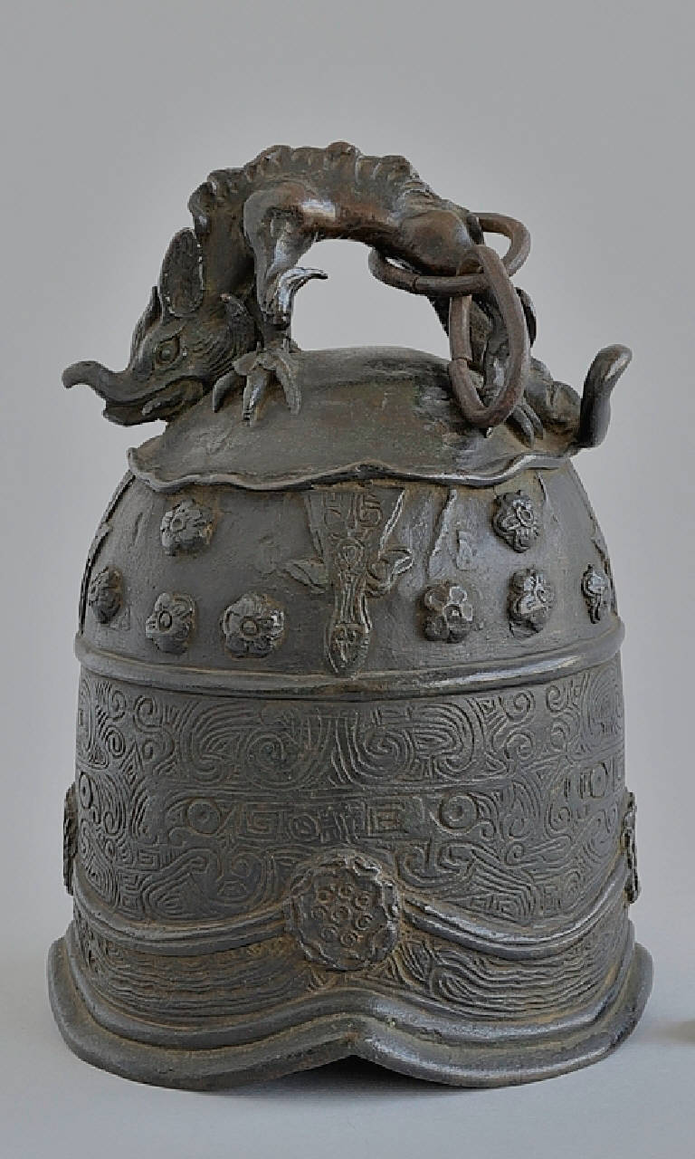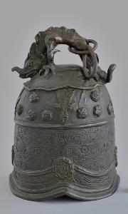 • NOTIZIE STORICO CRITICHE Si tratta di una campana robusta e pesante, se comparata alle altre della collezione, poiché si tratta di un pezzo creato per essere realmente suonato (non è il caso di molte altre campane della collezione). La campana è stata infatti fusa con un bronzo molto chiaro e sonoro che permette un suono forte, pulito e durevole. Anche i particolari sono curati: la patina, scura e lucida non sembra artificialmente creata. I medaglioni a fiore di loto appartengono anch'essi alla tradizione delle campane buddiste e rappresentano quello che nelle campane da tempio di maggiori dimensioni è il punto di battuta del batacchio.