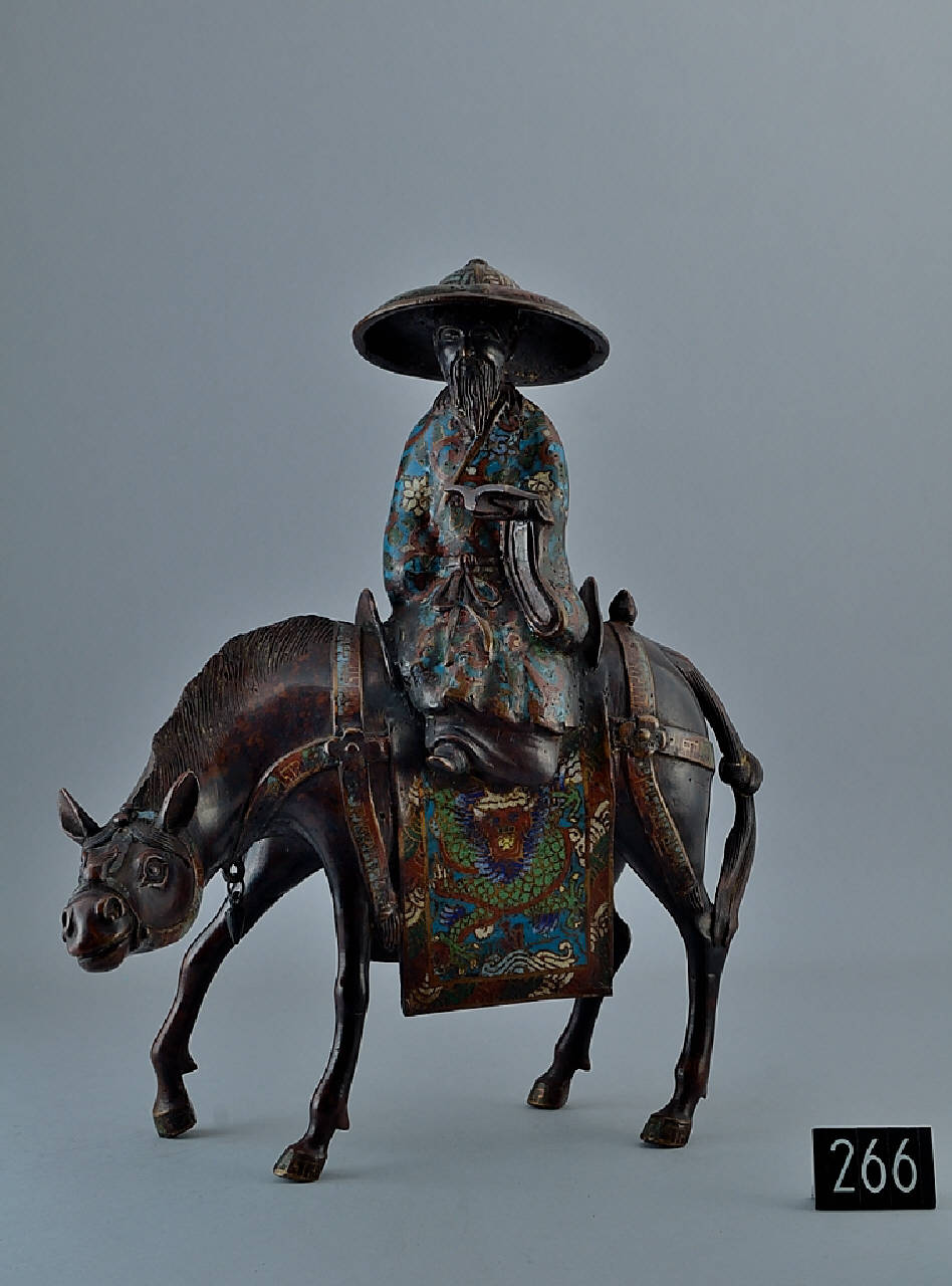 - NOTIZIE STORICO CRITICHE La produzione di uomini a cavallo o a dorso di mulo simili a questa doveva essere grande se ancora oggi si trovano sul mercato in grande quantità. Nella collezione milanese si trovano soprattutto personaggi cinesi, non sempre di facile identificazione, ma a un certo punto divennero popolari le figure di samurai a cavallo da vendere come souvenir per i turisti stranieri.\n\nNelle raffigurazioni cinesi l'immagine di un uomo a cavallo che legge un libro evoca il detto chillu kanchangben (aspetta e vedi cosa succede) ovvero, l'esortazione a lasciare che le cose prendano il loro corso.
