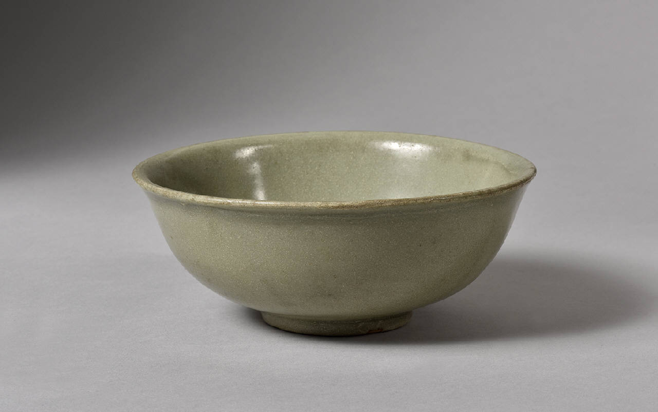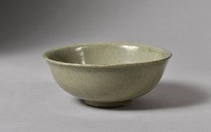 Ciotola in ceramica a invetriatura celadon nei toni del grigio con fine craquelure.