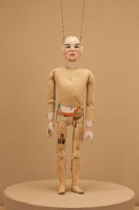Testa in legno di cirmolo fissata al corpo tramite ferro, occhi di vetro. Bocca mobile. Corpo normale in tiglio tagliato in vita e raccordato con viti ad anello e tela . Gambe unite al bacino tramite bordione in ferro, ginocchia ad incastro mobile. Mani mobili in tiglio con dita scolpite. Bilancino a croce metodo Holden.