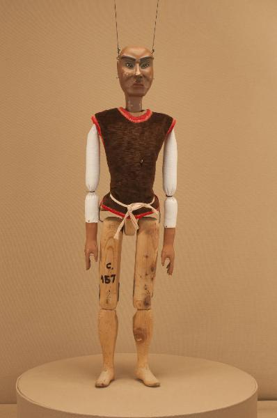 Testa in legno di tiglio fissata al corpo tramite ferro, occhi di vetro. Corpo normale in abete. Gambe unite al bacino tramite bordione in ferro, ginocchia ad incastro mobile. Mani in tiglio con dita scolpite. Bilancino tradizionale per coppie.