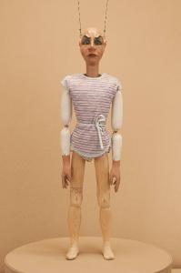 Testa di legno di tiglio fissata al corpo tramite ferro, occhi di vetro. Corpo normale in abete. Gambe unite al bacino tramite bordione in ferro, ginocchia ad incastro mobile. Mani in tiglio con dita scolpite e separate. Bilancino tradizionale per coppie.