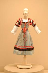Costume da popolana di foggia seicentesca composto da gonna, camicetta e bustino.