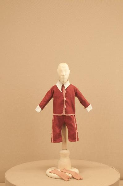 Costume da bambino popolano di foggia seicentesca per figurino composto da calzoni, giacca e calze.
