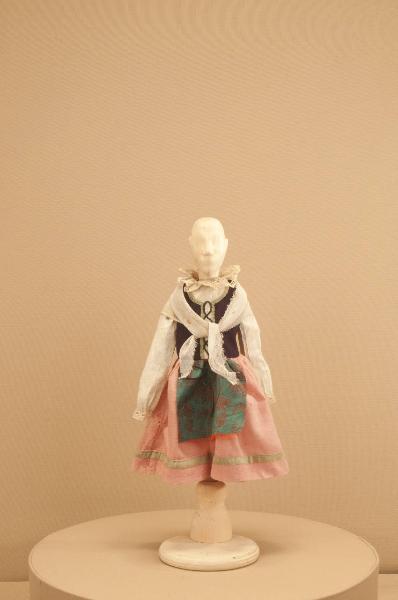 Costume da popolana di foggia seicentesca per figurino composto da veste, sottogonna e scialle.