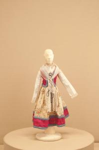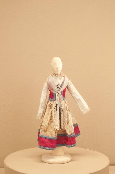 Costume da popolana di foggia seicentesca per figurino composto da veste, sottogonna e scialle.