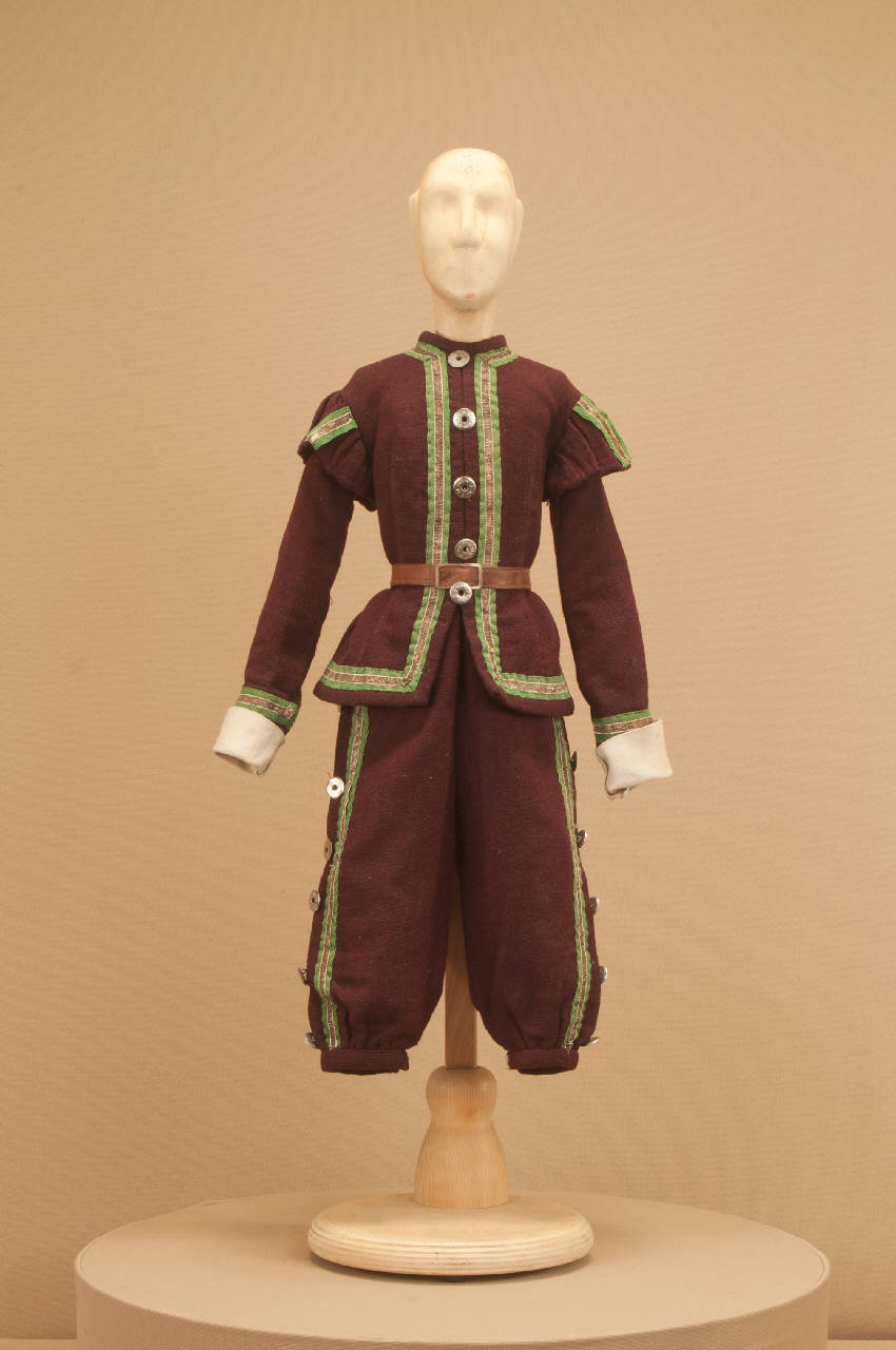 Livrea per suonatore di foggia seicentesca composta da calzoni, casacca e cintura.