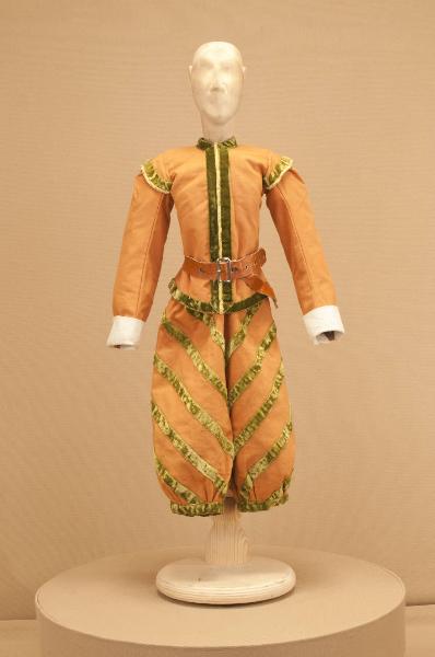 Costume per militare di foggia seicentesca composto da calzoni, giacca e cintura con portaspada.
