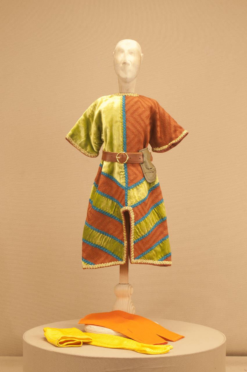 Costume per militare di foggia medievale composto da veste, sottomaniche, cintura e calzamaglia.