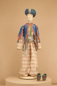 Costume militare di foggia orientale composto da pantaloni, corpino, bolero, fascia, scarpe e turbante.