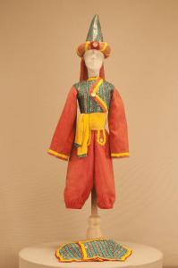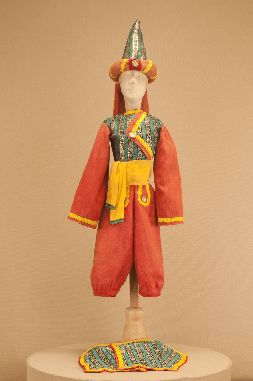 - NOTIZIE STORICO CRITICHE Lo spettacolo "Gerolamo schiavo in Algeri" fu rappresentato per la prima volta al Teatro Gerolamo nel 1933, utilizzando alcuni costumi preesistenti: lo si nota dalla foggia e dai materiali impiegati risalenti, con molta probabilità, alla seconda metà dell¿Ottocento. Potrebbe trattarsi di materiale proveniente dall¿edificio di Antonio Colla. Alcune parti del costume sono state rifatte da Eugenio Monti Colla nel 1989 per il debutto all¿Hebbel Theatre di Berlino dello spettacolo "Le mille e una notte", mantenendo le fodere originarie e, per il cappello, il turbante: il costume era usato per il personaggio della guardia.