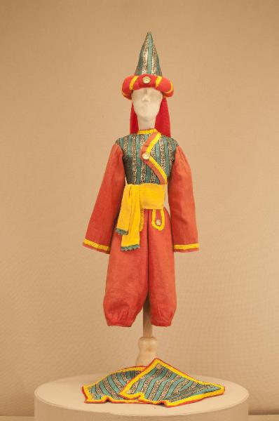 - NOTIZIE STORICO CRITICHE Lo spettacolo "Gerolamo schiavo in Algeri"fu rappresentato per la prima volta al Teatro Gerolamo nel 1933, utilizzando alcuni costumi preesistenti: lo si nota dalla foggia e dai materiali impiegati risalenti, con molta probabilità, alla seconda metà dell¿Ottocento. Potrebbe trattarsi di materiale proveniente dall¿edificio di Antonio Colla. Alcune parti del costume sono state rifatte da Eugenio Monti Colla nel 1989 per il debutto all¿Hebbel Theatre di Berlino dello spettacolo "Le mille e una notte", mantenendo le fodere originarie: il costume era usato per il personaggio della guardia.