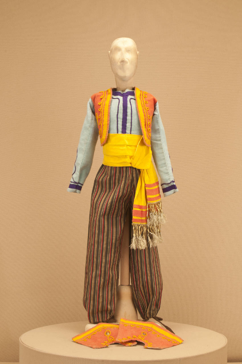 Costume per popolano di foggia orientale composto da pantaloni, corpino, bolero e uose.