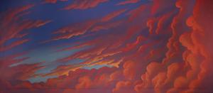 Sipario in tela di cotone da 200 g. al mq. dipinto con colori a terra uniti con leganti vinilici e fortezzato con strisce in tela di cotone di diverse grammature lungo i bordi perimetrali.